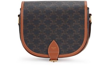 CELINELarge strap Folco bag in Triomphe canvas and calfskin
