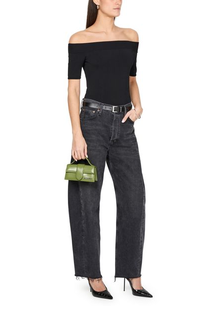Le Bambino bag is very soft to the touch and features a handle with a thin strap for easy carrying. The visible stitching adds a touch of detail to the design, while the logo on the front showcases the brand's signature style. Perfect for adding a chic touch to any outfit.
