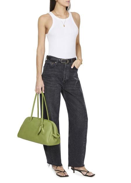 Jacquemus's Le Turismo bag showcases a chic silhouette, featuring double handles and visible topstitching that enhance its artisan appeal. Worn on the shoulder, it effortlessly combines style and practicality, while the thin strap adds a touch of elegance. Perfect for those who appreciate contemporary design and functional fashion.
