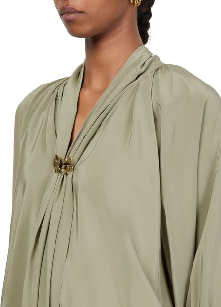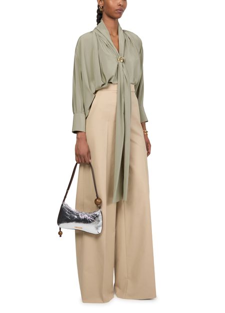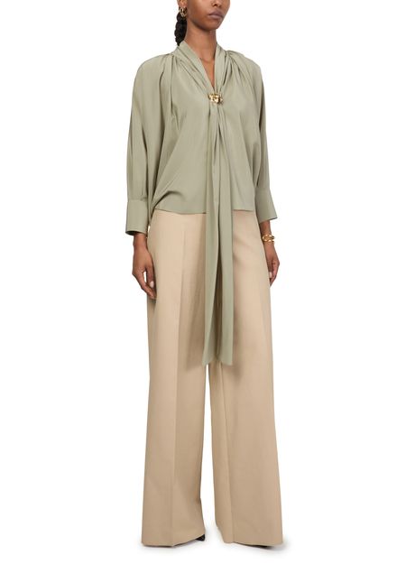 Reveal Max Mara's Leonidia long sleeved blouse, a masterpiece of modern elegance. This V-neck top features cuffed sleeves for a tailored look, perfect for both professional and casual settings. The sleek lines and refined silhouette ensure it pairs effortlessly with any ensemble.