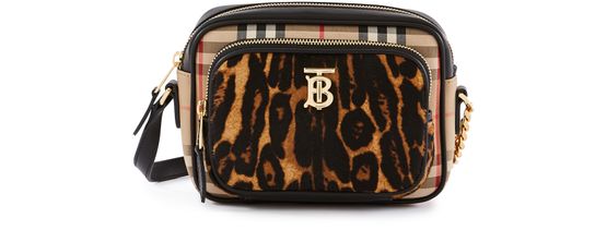 The Scottish Burberry tartan pattern remains anchored in the DNA of the English luxury brand. This model is impressive with its double leopard and checkered pattern. A metal detail forming Thomas Burberry's initial completes this bag that can be worn on the shoulder or across the body with a chain shoulder strap.