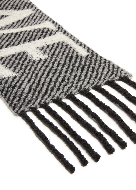 Unveil Loewe's scarf in alpaca and wool, a masterpiece of elegance with its striped print and fringed edges. The embroidered logo adds a touch of sophistication, making it a perfect accessory for any stylish ensemble.