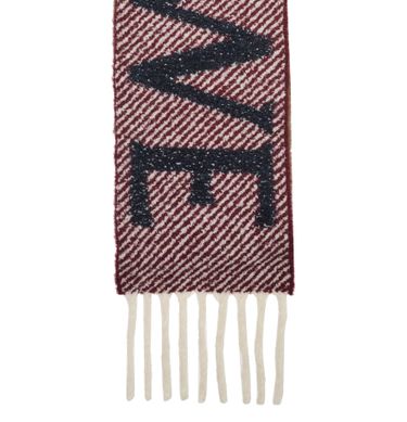 Unveil Loewe's scarf in alpaca and wool, a masterpiece of elegance with its striped print and fringed edges. The embroidered logo adds a touch of sophistication, making it a perfect accessory for any stylish ensemble.