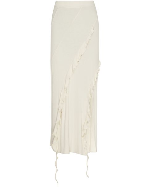 Acne's long skirt is designed with a modern and versatile style. The midi-length skirt features a side slit, adding a touch of elegance to the look. It also comes with an elasticated waist for a comfortable fit. Perfect for both casual and formal occasions, this skirt is a must-have in every wardrobe.