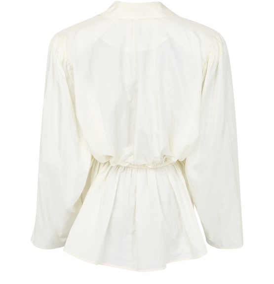 Reveal Chloe's long-sleeved shirt, featuring a refined V-neck and elegant button fastening. The gathered waist detail creates a flattering silhouette, while the soft fabric ensures comfort. Perfect for pairing with tailored pants or skirts, this top brings effortless sophistication to any modern wardrobe.