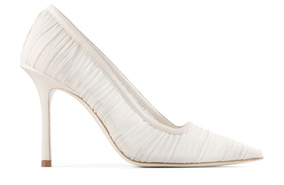 • Description : Pumps, embellished tulle, stiletto heel, high heel, closed, pointed toe, visible stitching.