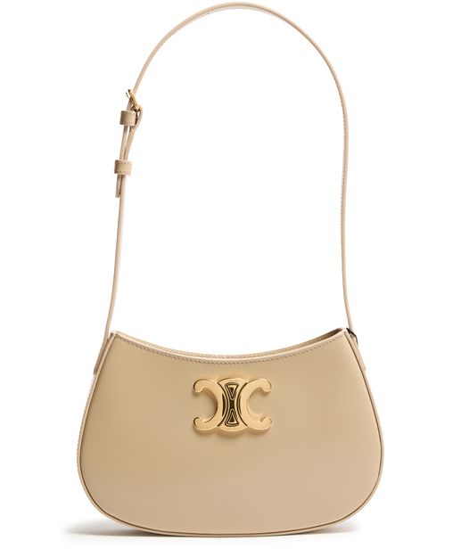 Celine's Medium Tilly bag in shiny calfskin is a luxurious companion, designed for effortless elegance. With a zipped closure and one main compartment, it offers practicality without sacrificing style. The adjustable strap allows for versatile shoulder carry, while the lambskin lining and gold finishing elevate its sophisticated allure, perfect for any occasion.