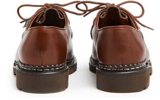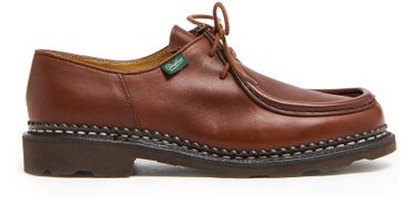 Unveil Paraboot's Michael derbies with their sleek design, featuring a logo on the side, visible stitching, and a round toe. Experience unparalleled comfort with a low heel, embodying classic loafers style with a modern twist.