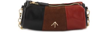 Manu Atelier presents the Mini Cylinder handbag. This leather accessory is boosted by its colourful design combined with a metal chain.