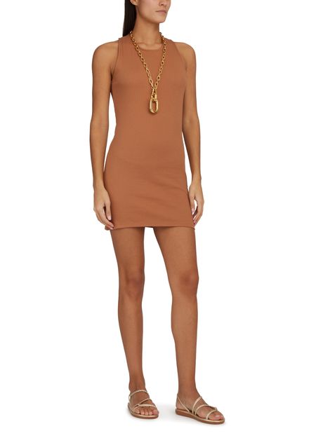 • Description : Short dress, sleeveless, round neck, label with logo, straight cut.