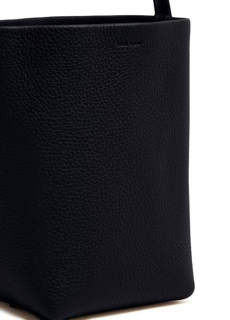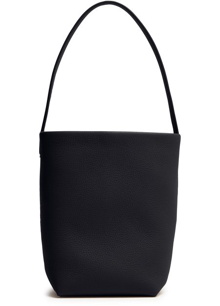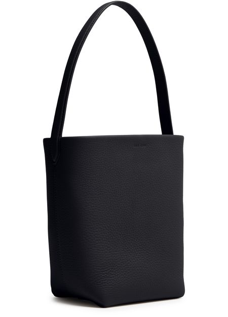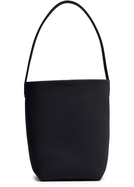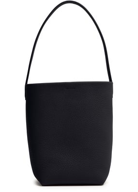 Reveal The Row's N/S Park Tote small bag, crafted from grained leather with a single handle for effortless sophistication. The visible stitching and embossed front logo highlight refined craftsmanship, while the spacious single compartment ensures practical elegance for your daily essentials.