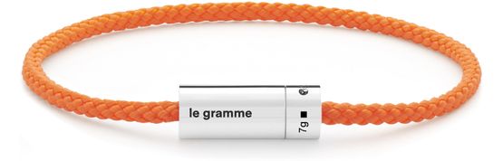 Le Gramme's Polished Sterling silver and polyester nato cable bracelet showcases a sleek string design, featuring the brand's signature logo detail. Its silver finish and screw closure offer both elegance and security. Stamped in France, this non-adjustable length piece is made of precious metals and comes with a lifetime guarantee.