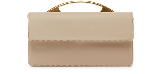 The Row's Nia handbag showcases a sleek silhouette with a flap closure and a single handle for effortless elegance. Hand carried or worn with the thin strap, it offers versatility for any occasion. Visible topstitching adds a refined touch, making this piece a must-have for the modern minimalist.