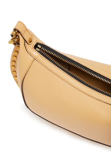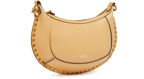 The Isabel Marant Oskan Moon shoulder bag is a stylish and practical accessory. It features an adjustable and detachable strap for versatile wear, visible stitching for added detail, an embossed logo for a touch of luxury, and a single compartment for easy organization.