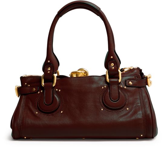 Reveal Chloe's small Paddington shoulder bag, crafted from smooth leather with double handles for versatile carrying. Gold-finish accents and visible topstitching highlight its refined design, while a front logo and secure zipper closure add signature flair and practicality. An interior pocket ensures your essentials stay organized in style.