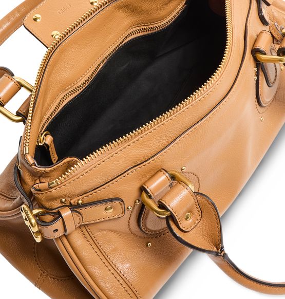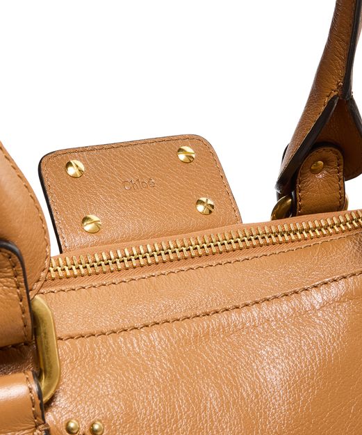 Reveal Chloe's Paddington shoulder bag, crafted from smooth leather with signature saddle stitch and gold finish. Double handles and a zipper closure offer both style and practicality, while visible stitching and studded details add a refined, modern edge to this iconic accessory.