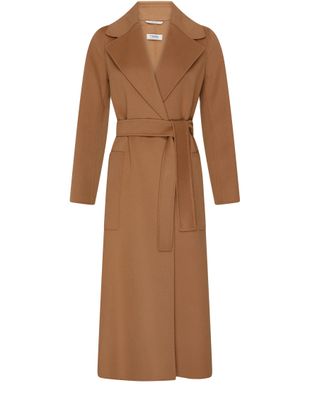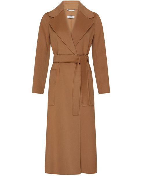 S Max Mara's Paolore belted coat boasts a long silhouette with long sleeves and a stylish notched collar. This elegant piece features two front pockets for practicality and showcases the brand's logo at the back label, making it a perfect blend of sophistication and functionality for any occasion.