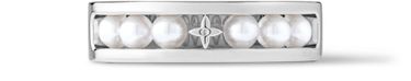 This meticulously crafted Pearls Fusion Ring encases resin pearls and a Monogram Flower within its silver-finish metal framework. Simultaneously masculine yet delicate, this tactile piece with rolling pearls is a striking contemporary ornament, which can be worn on its own or complemented with earrings, a bracelet and a necklace from the same capsule.