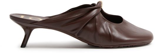 Reveal Loewe's smooth leather mules, crafted with a medium stiletto heel and a closed, round toe for a refined silhouette. The gold-finish logo in gold letters adds a signature touch, while the sleek design ensures a polished look for any occasion.