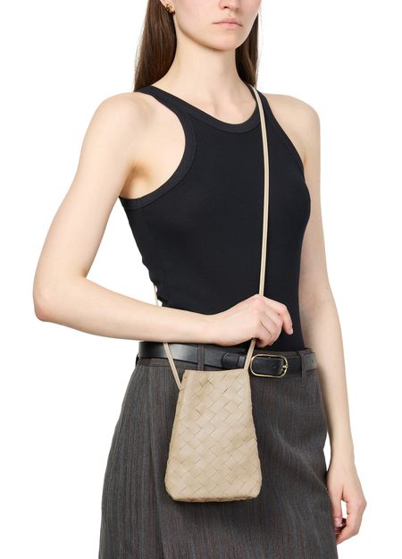 Unveil Bottega Veneta's Phone Holder with its distinct visible topstitching and versatile design. Equipped with a thin strap and double handles, it can be conveniently carried on the back like a backpack, offering both style and functionality.