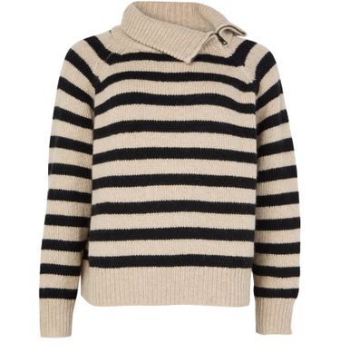 Reimagine Nili Lotan's Raelynn stripe sweater, where the perfect combination of a funnel neck and raglan sleeves creates a sophisticated silhouette. With its regular fit and zipper closure, this ribbed knitwear boasts a striking striped print, effortlessly transitioning from casual days to chic evenings.