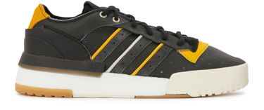 Adidas' Rivalry RM Low ally retro styling with modern technology. Black leather upper, clear rubber sole and Boost midsole.