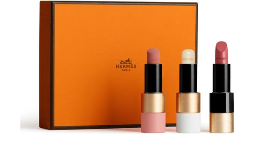 • Details : The Rouge Hermès orange box contains a lip care balm, a matte rosy lip enhancer in 49 Rose Tan, and a satin lipstick in 21 Rose Épicé. In line with anti-waste regulations and in order to reduce our environmental impact, we no longer include samples with this product.