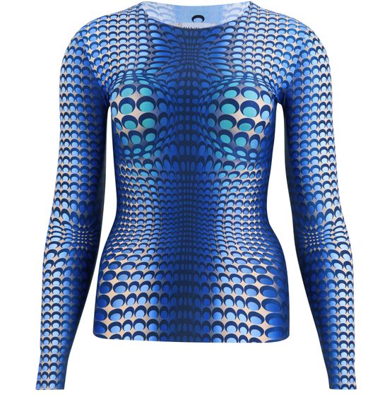 This Moon top fits like a second skin and will clothe you in comfort and softness. Its long-sleeved Marine Serre signature design hugs the feminine figure.
