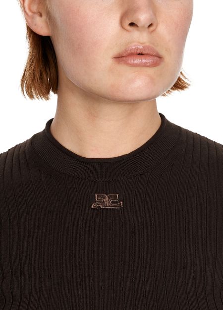 Courrèges adds femininity to the silhouette with this short-sleeved cotton top. As a result, this lightweight tube-knit jumper goes well with a flowing skirt or a pair of slim trousers.