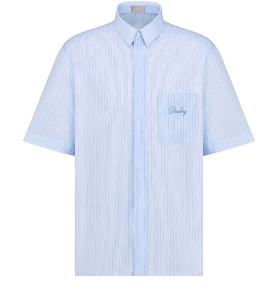 Introducing Dior's Short-Sleeved Shirt with Diorling Embroidery, a sophisticated piece that blends elegance with contemporary style. Featuring a subtle concealed button closure, a collar measuring 5.5 cm, and a practical chest patch pocket, this shirt is designed for the modern wardrobe. Its straight hem and short sleeves offer timeless versatility.