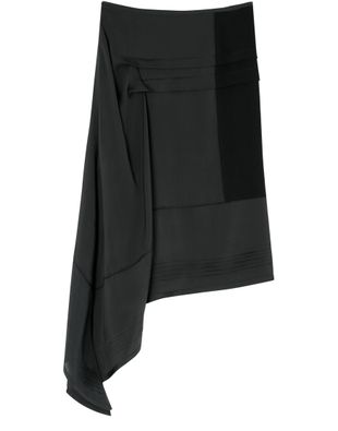 Introducing Lemaire's skirt with pleats. This midi-length design features front pleating and an asymmetric style, adding a modern twist. The side zipper closure ensures a seamless fit, making it perfect for any occasion.