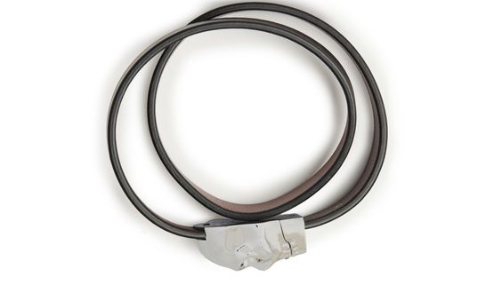 McQueen's Skull double wrap bracelet showcases a striking design with leather belt intricately entwined. Adorned with silver-tone hardware, it features a logo in silver letters and a distinctive logo buckle. This statement piece effortlessly combines edgy elegance and sophistication, making it a must-have accessory for any fashion enthusiast.
