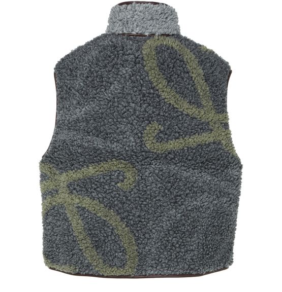 Introducing Loewe's sleeveless vest in wool blend, a perfect blend of style and comfort. This regular fit, short-length piece features a high neck and zipper closure, complemented by a zipped breast pocket. The padded texture and all-over logo add a modern touch, making it ideal for casual settings.