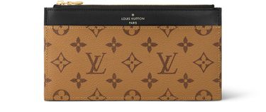 The Slim purse is a chic, streamlined design which can be carried in the hand or slipped inside a bag. It combines Monogram canvas with smooth cowhide leather, embossed in gold with the Louis Vuitton signature. In addition to its zipped main compartment, it offers an outside flat pocket, two outside compartments and six card slots.