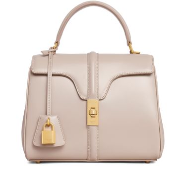 Celine's Small 16 bag in satiny calfskin is a versatile companion for any occasion. With its elegant turn lock closure and multiple carrying options—hand carry, shoulder carry, or cross-body carry—it effortlessly combines style and functionality. The thoughtfully designed compartments keep essentials organized, while protective studs ensure durability.