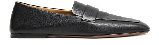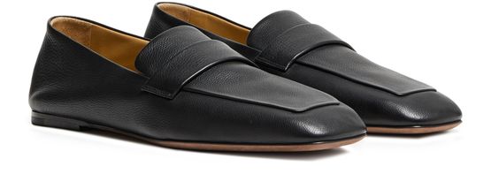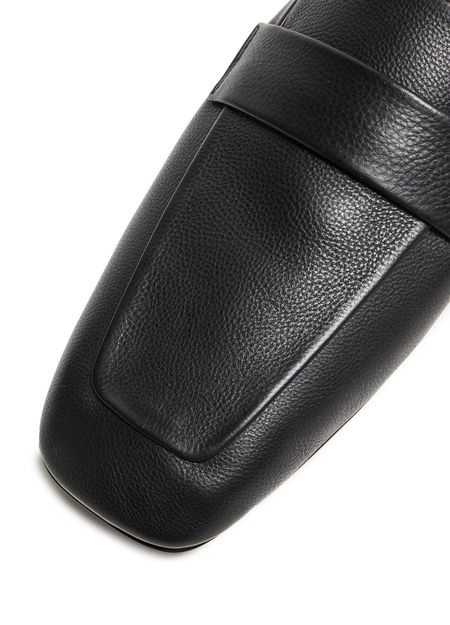 Indulge in the timeless elegance of these square loafers in grained leather. With a sleek square toe and a refined flat heel, they embody modern sophistication. The leather outer sole ensures durability, making them an ideal choice for style and comfort enthusiasts.