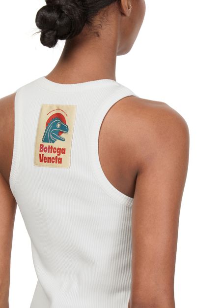 Unveil Bottega Veneta's tank top with its refined crew neck design and logo at the back. This versatile piece effortlessly complements any look, offering a modern silhouette that is both sleek and stylish. Perfect for various occasions, it seamlessly blends into your wardrobe.