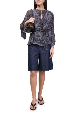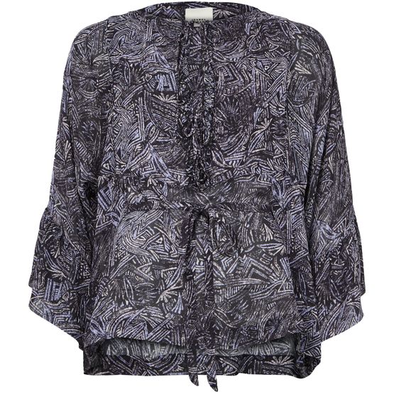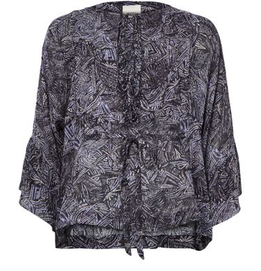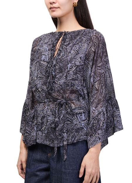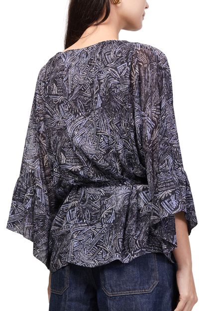 Reveal Isabel Marant's Tekia printed blouse, a modern top featuring a round neck and distinctive kimono sleeves. The geometric details and bow fastening add a refined touch, making this piece effortlessly versatile for both day and evening looks. Style it with tailored pants or a sleek skirt.
