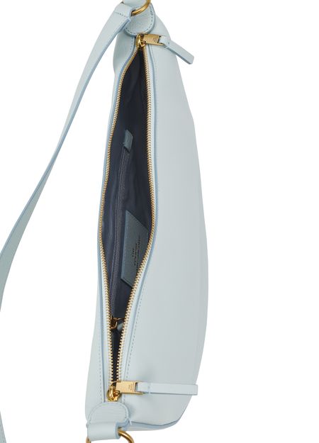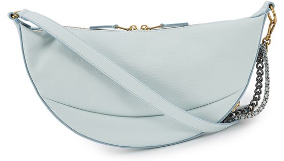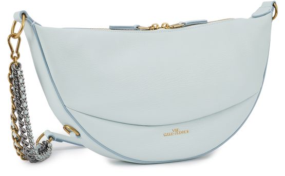 The Mini Eclipse bag bears the Marc Jacobs signature. This bag, designed to be worn across the body, is crafted in leather. It features a sleek design with curved lines.