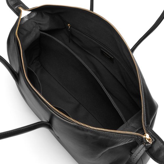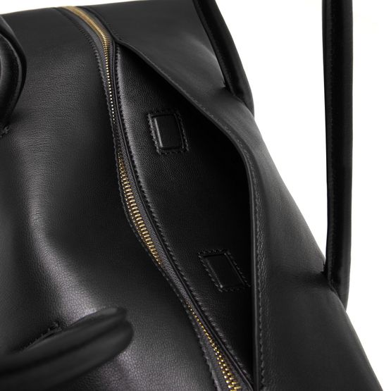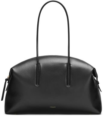 Reveal Demellier's The Stockholm handbag, crafted from sumptuous suede with double handles for versatile carrying. Gold-finish accents and visible stitching highlight the refined design, while a front logo and secure zipper closure add a modern touch to this sophisticated shoulder bag.