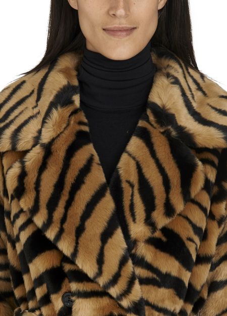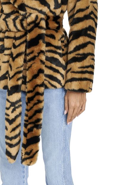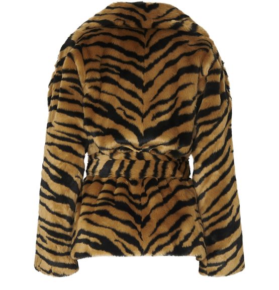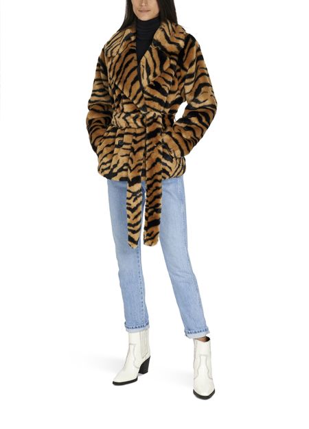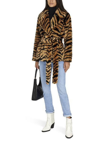 Stand's cropped Tiffany coat ties at the waist with a belt, accentuating the fitted side of this piece with its crossover buttonhole.