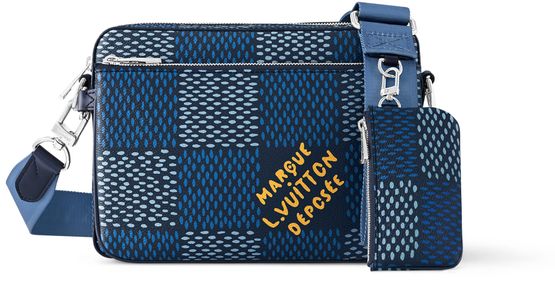 The Trio Messenger bag is made from Damier Heritage canvas, Pharrell Williams' latest exploration of the House’s emblematic checkerboard pattern. A hybrid bag, the Trio combines a main compartment with a removable front zipped pocket. The adjustable and removable textile strap is signed "Louis Vuitton" and features a small detachable coin purse.