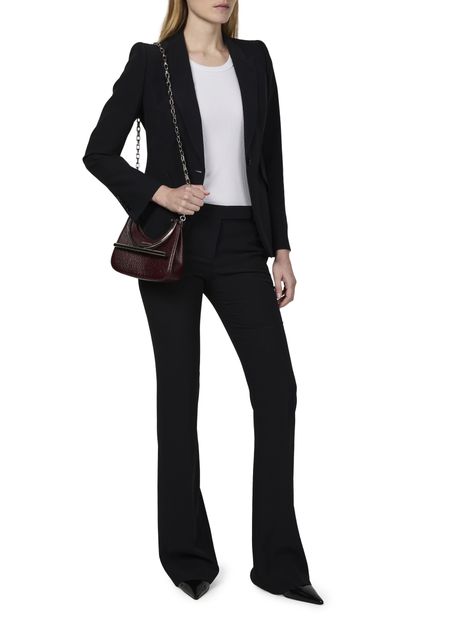 Discover McQueen's Trousers, designed for effortless style. Featuring a concealed closure and belt loops, these ankle-length bootcut casual pants boast visible stitching for a refined touch. With side pockets, back pocket, and welt pockets, they effortlessly blend functionality and fashion, making them a must-have for any wardrobe.