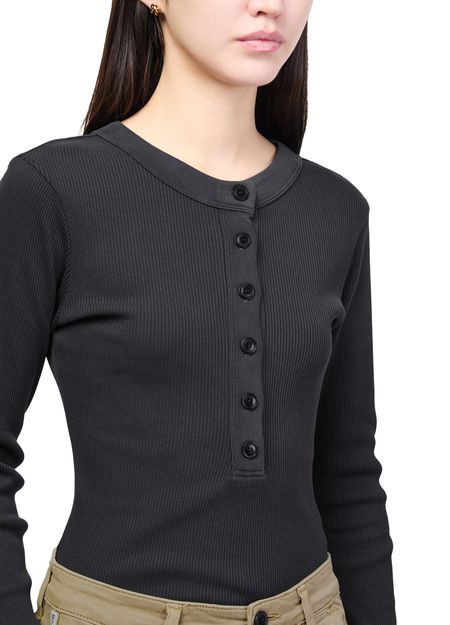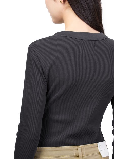 Reveal Citizens of Humanity's Varra Henley long-sleeved top, crafted in ribbed fabric for a refined texture. The crew neck and button fastening add a modern touch, while the long sleeves offer versatile styling. Perfect for layering or wearing solo, this top elevates any contemporary wardrobe.