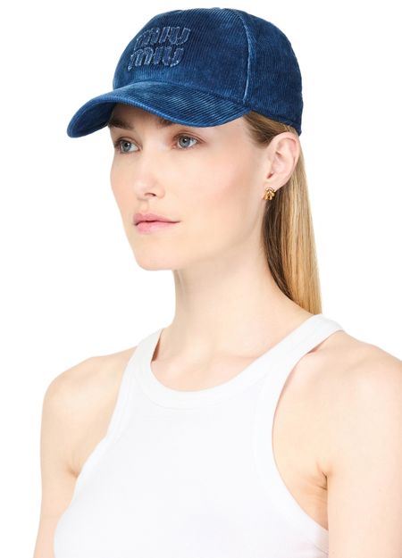 Miu Miu's Velvet baseball cap showcases a six-panel design that effortlessly combines style and comfort. With visible stitching and a logo at the front, it makes a bold statement. The curved visor and round crown add a modern touch, perfect for elevating any casual outfit while providing a chic flair.