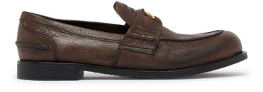 Step into elegance with Miu Miu's Vintage-effect leather loafers. Showcasing a printed logo and logo in gold letters, these loafers feature visible stitching and a round toe. The low block heel offers comfort, while the logo-printed insole ensures a stylish touch. Perfect for elevating any outfit effortlessly.