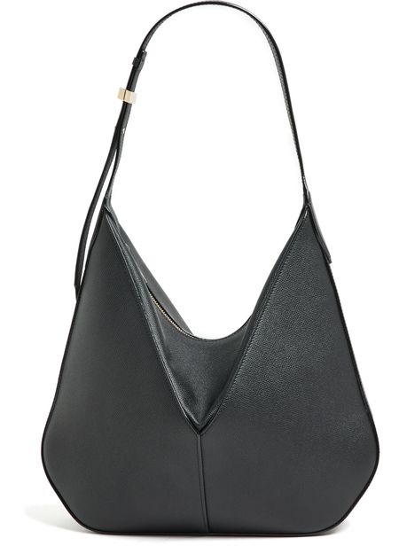 Description : zipper closure, gold finish, single compartment, visible topstitching, hand carried, worn on the shoulder, adjustable strap, thin strap, single handle.