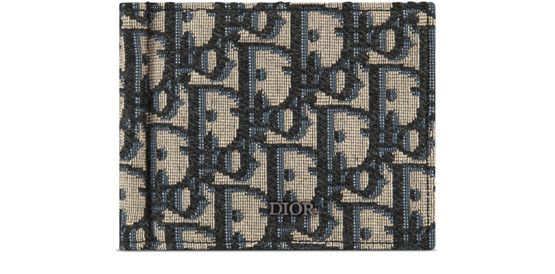 Unveil Dior's Wallet with Bill Clip, featuring a stunning ruthenium-finish brass Dior signature on the front. The bi-fold style offers a sleek interior embossed with Dior's signature, complemented by six card slots and a handy bill clip. A dust bag is included for added elegance.