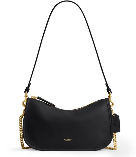 Reveal Coach's Waverly shoulder bag, crafted from smooth leather and adorned with a decorative label featuring the embossed Coach logo. The gold-finish chain strap and detachable option offer versatile styling, while visible stitching and a front logo in gold letters add a refined, modern touch.