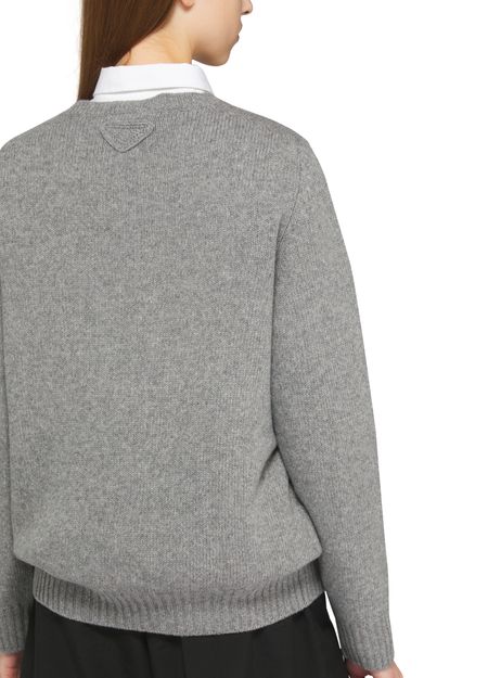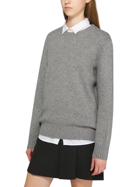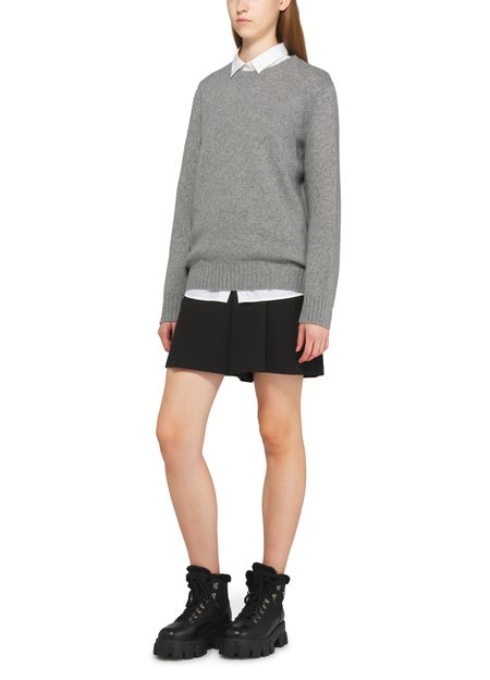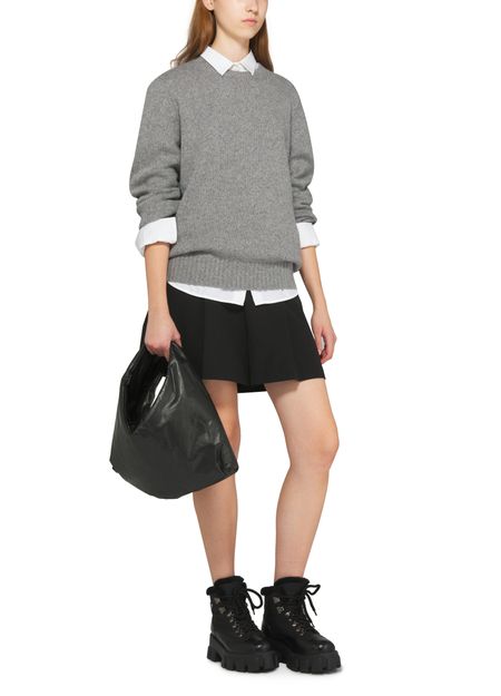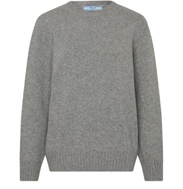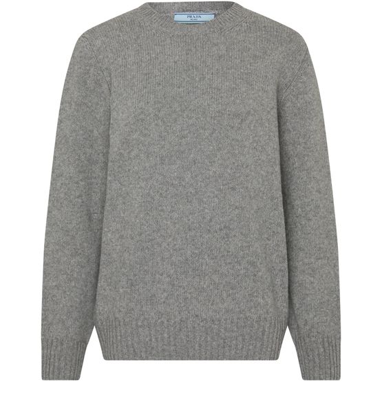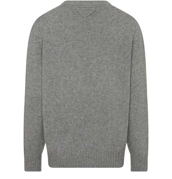 Prada's wool and cashmere round neck sweater showcases a slim fit silhouette, crafted from marled material for a unique texture. Its long sleeves and ribbed cuffs add a touch of sophistication, making it a versatile piece for layering or standalone elegance. Embrace comfort and style effortlessly with this timeless classic.